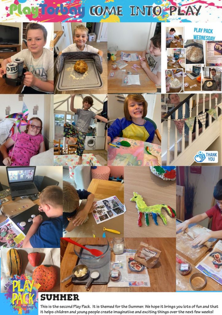 In Torbay our local play organisation joined forces with colleagues from Imagine This… a partnership of 43 voluntary sector children and young people’s organisations in Torbay, and we developed and provided Let’s Create and Play Packs for children and young people across ALL age ranges 0 – 19 years including treasure and sensory baskets for little ones and acrylic paints, sketch books and opportunities to take part in on-line sessions for teenagers.