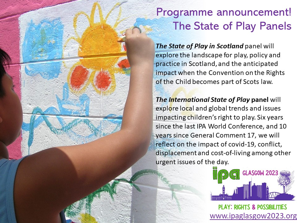 7 of our 12 Playwork Foundation Trustees will be attending the Glasgow International Play Association conference next month. If you are going please say hi and join us at our Playworking workshop. If you can’t make it look out for our Reflections on Glasgow post here.
