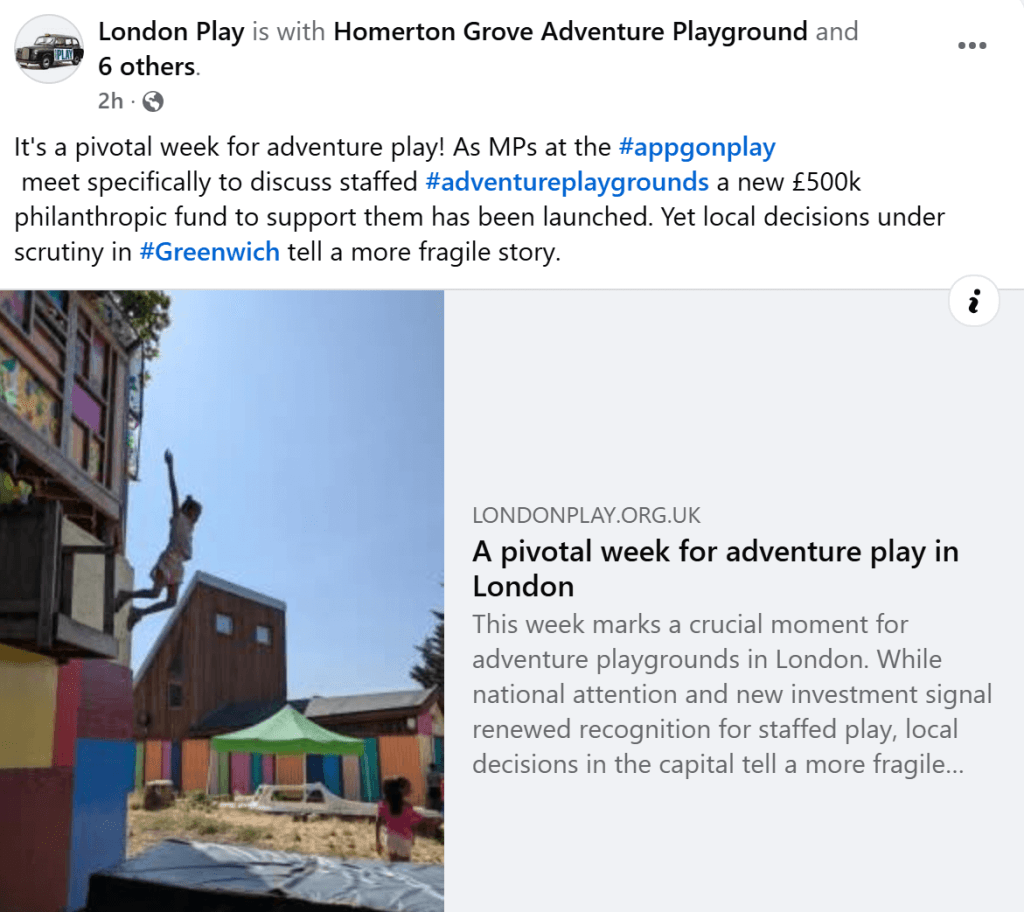 Play England framed the fund as a welcome step within a broader picture: a contribution toward restoring and protecting staffed adventure playgrounds, and a sign that national recognition and investment may be beginning to align with long-standing sector advocacy.