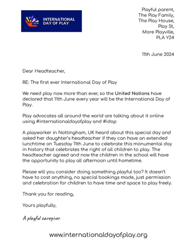 So, inspired by Adele’s original letter, The Playwork Foundation has drafted an updated version that parents, carers, and community members can use to contact their Headteacher / Principal or Board of Governors / Board of Management.